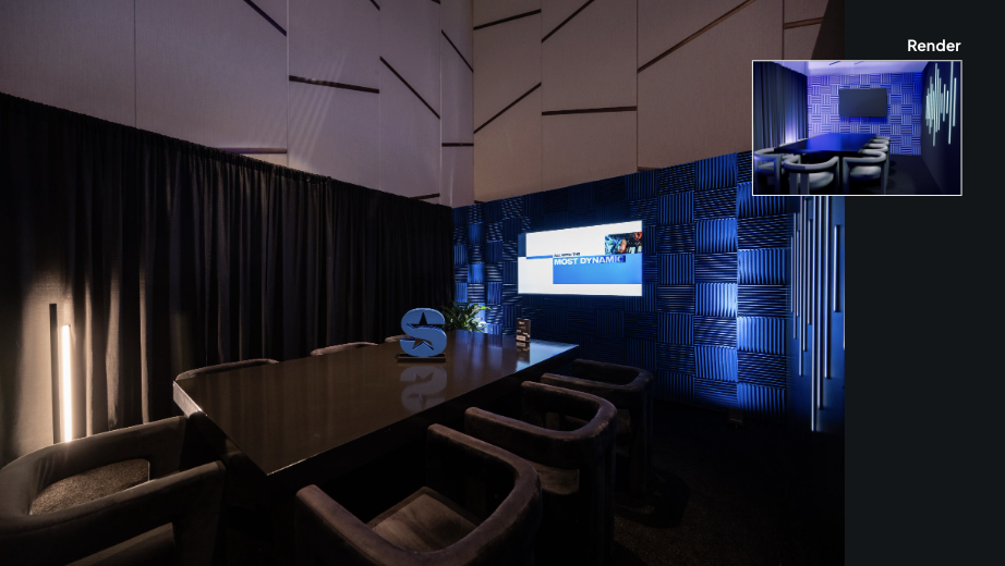 A ballroom at The Aria, Las Vegas was transformed into a multi-functional environment designed and built with a series of connected rooms, each serving a unique purpose—from a showcase of SiriusXM’s historical and latest innovations, to a stylish lounge and several meeting spaces for different sales teams. The space became an immersive, functional hub that encouraged collaboration and highlighted SiriusXM's full range of capabilities.